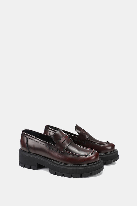 DARK BORDEAUX LEATHER CHUNKY LOAFERS