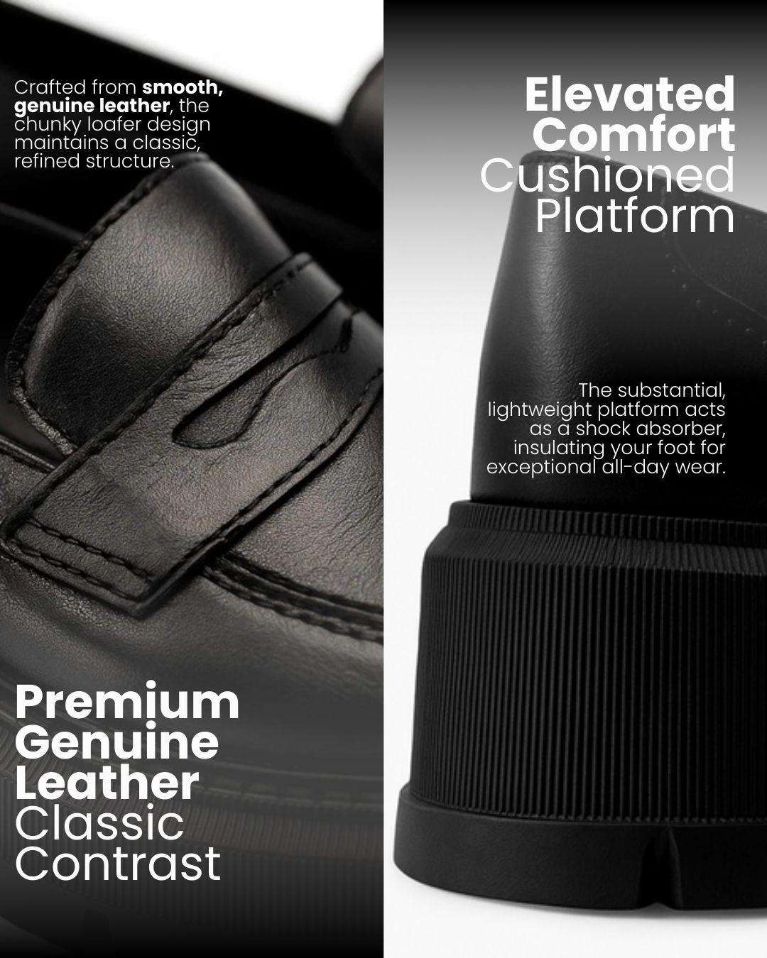 Crafted from 100% premium genuine leather, this silhouette takes the traditional penny loafer and elevates it—literally.